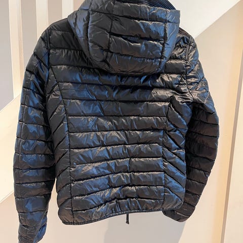 Parajumpers vinterjakke i dun for dame i størrelse M. Den har glidelås og knappelukking i front, samt flere utvendige lommer. Klassisk Parajumpers-detalj med gul stropp ved halsen og logo-patch på ermet. Egnet som varm ytterjakke i kaldt vær.