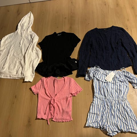 Klespakke med 9 plagg i størrelse 158/164 selges samlet. Plaggene er svært pent brukt, ingen feil eller mangler. Pakken inneholder: