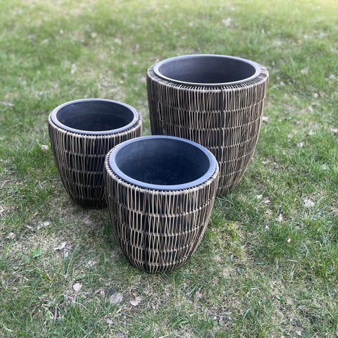 Dekorative og moderne blomsterpotter - sett laget i fargerik rotting-look.