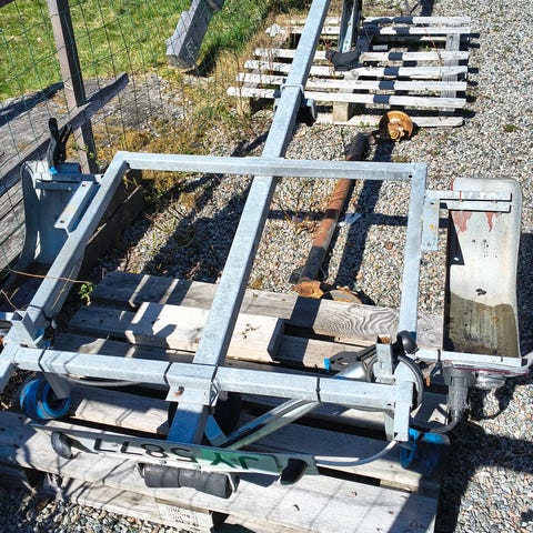 Støttehjul til tilhenger. Hjulet er montert på et justerbart rør med sveivfeste for montering på tilhengerdrag. Egnet som støtte ved av- og påkobling av tilhenger og for å kunne trille tilhengeren kortere avstander når den ikke er koblet til kjøretøy. Metallkonstruksjon med gummihjul.