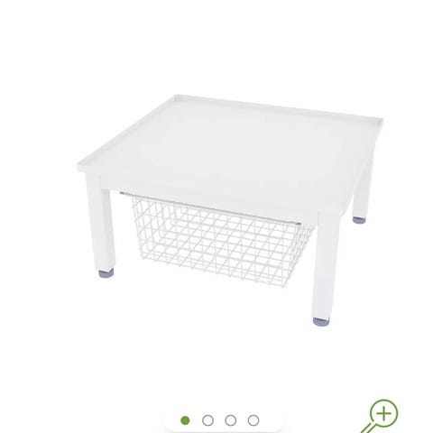 Nordic opphøyd base med kurv for vaskemaskin/tørketrommel. Kurven lar deg oppbevare vaskemidler og vaskepose på praktisk vis. Ikke egnet for oppsett der en tørketrommel er plassert på toppen av en vaskemaskin