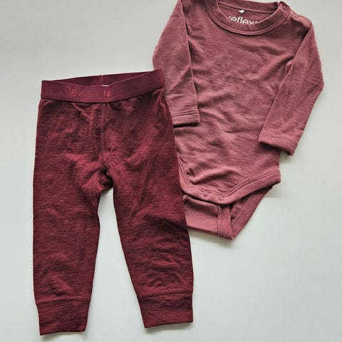 Sett med body og bukse i merinoull fra Reflex, i en nydelig burgunder farge. Ubrukt med lapp på fremdeles 🤍