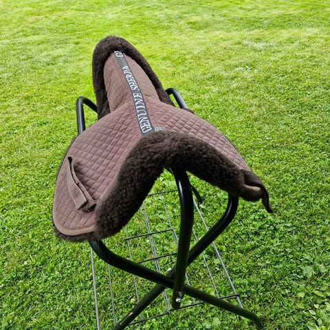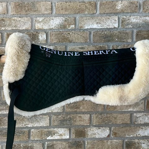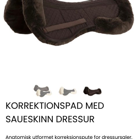 Genuine Sherpa saueskinnspad anatomic til sal. Pad i saueskinn med anatomisk utforming. Leveres med flere svarte innlegg/puter for individuell tilpasning under salen. Egnet som trykkfordelende underlag mellom sal og hesterygg.