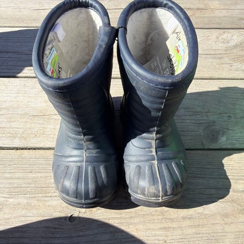 Slushers str 33 i fin stand, Merk mye mønster i sålen. Har blitt for små, men er klare for flere sørpefylte sølepytter.