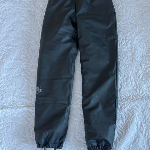 Vind og vannavstøtende bukse og jakke. Puster veldig bra så fint på våte dager som ikke krever fult regntøy. Jakken har fått noen små hvite flekker på ene armen. Ellers i veldig fin stand.
