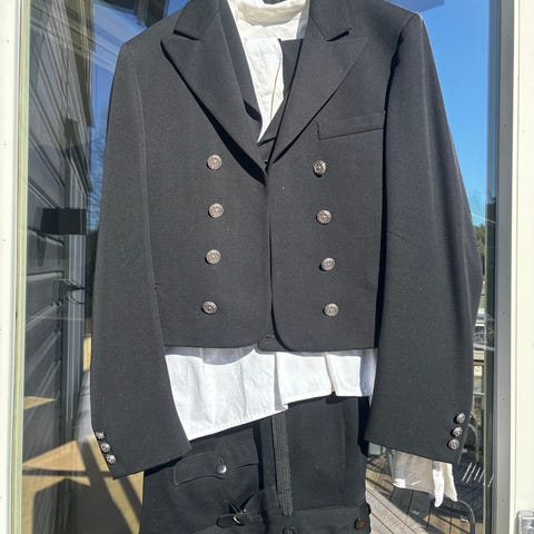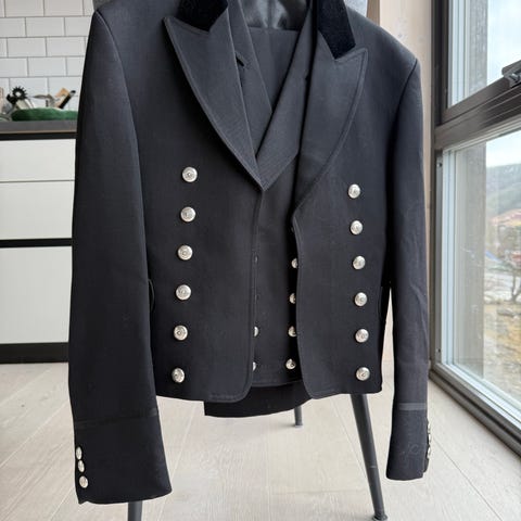 Selger en pent brukt Hallingdalsbunad som passer til ca str 170-180. Langbukse, seler, vest, jakke og sølvknapper. Selges kr 20.000.
