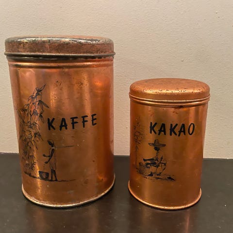 vintage boks, blikkboks, Mazetti, Øgon cacao, retro kjøkken, svensk design, oppbevaring, metallboks, grafisk design, 50-tall, 60-tall, industriell stil, nordisk interiør