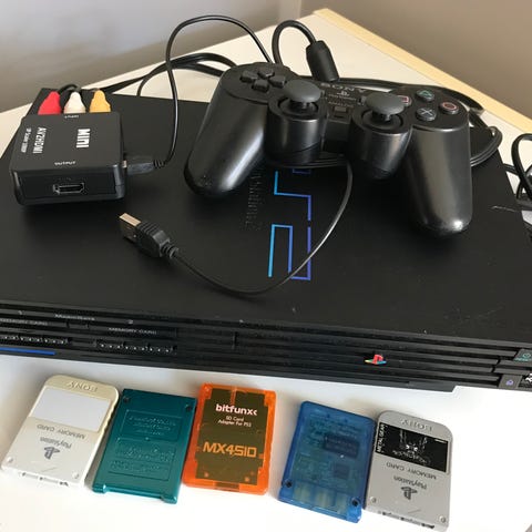 Playstation 2 pakke med Maskin, Kontroller og Kabler