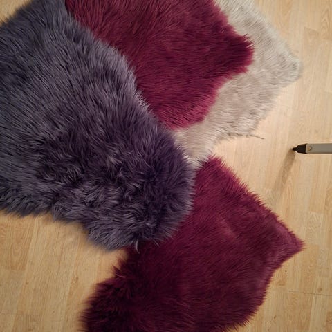 Selger et lite brukt lammeskinn. Ser det er en flekk på baksiden av skinnet, men usikker på om denne har vært der fra starten av.