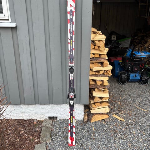Støckli Stormrider XL alpinski med lengde 174 cm. Skiene har integrerte bindinger, som vist på bildene.