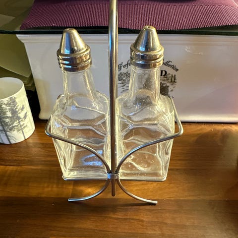 #vintage oljekaraffel #eddikkaraffel #krydderi og oljesett #retro oljeflaske #retro eddikflaske