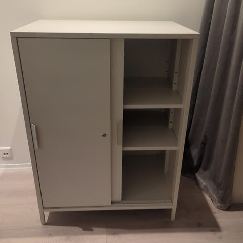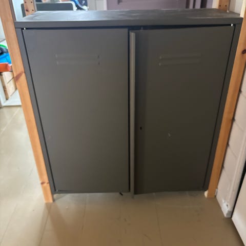 To stk Ikea Ivar stålskap. Farge "Gun Grey". Med nøkler. 495,- pr stk.
