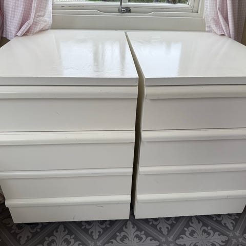 2 stk pent brukt skuffeseksjon på hjul til salgs, 150,- pr stk.