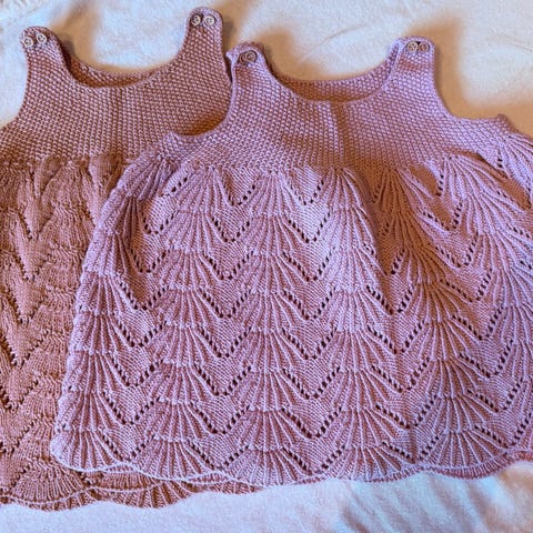 Pent strikket kjole med mønster. Aldri brukt str 80