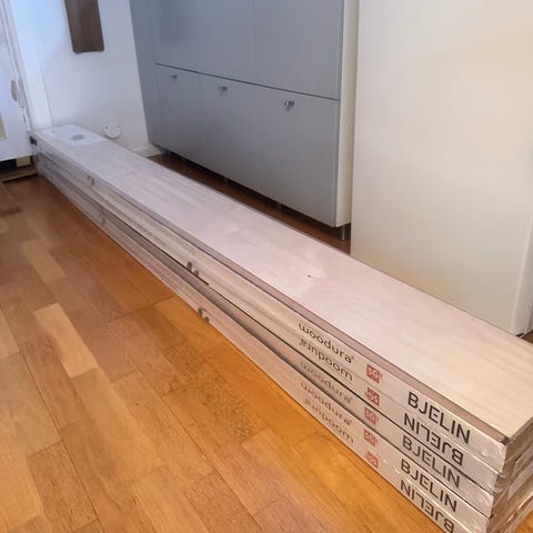 Bjelin Bosarp Cured Wood Select Eik, enplanks herdet tregulv/parkett. Plankene har dimensjoner 2379 x 283 x 11 mm x 300. Selger pakker (3 pcs.). Kjøpt i 2020 ved oppussing.