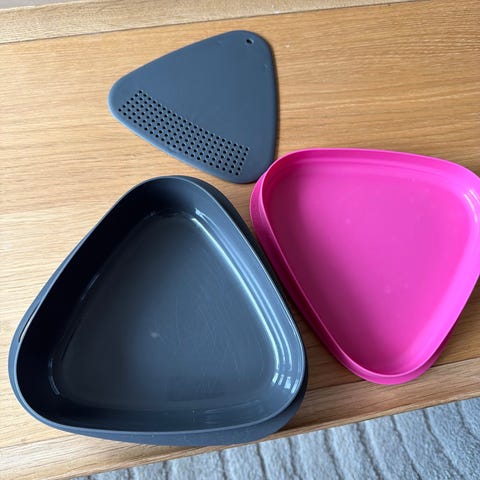 Underdelen er produsert i rustfritt stål og skal plasseres i midten rett over flammene. Lokket er godt forseglet med små ventilasjonshull og med tilstrekkelig høyde slik at kaker og brød kan ese ordentlig.