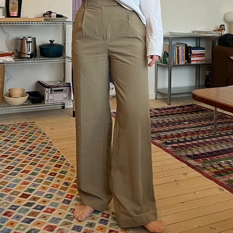 Stilige dressbukser fra Zara i en fin smaragdgrønn farge. Modellen har rette ben, press i front og en klassisk passform som fungerer både til jobb og hverdags.