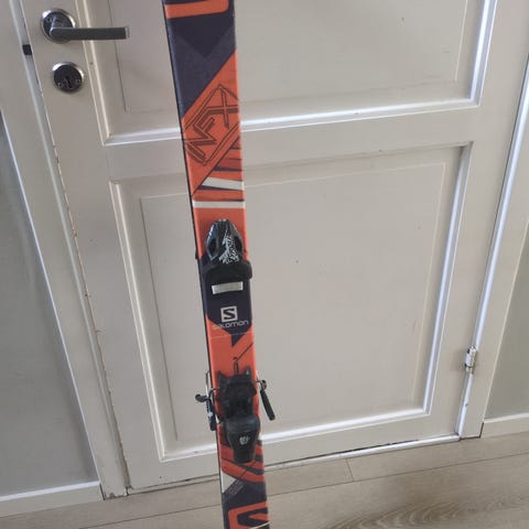 Salomon alpinski på 130 cm i oransje. Skiene leveres med bindinger montert. Atomic staver på 100cm i oransje medfølger. De er godt brukt og synelig brukt, men funker fortsatt fint. Selger da de er for liten for meg.