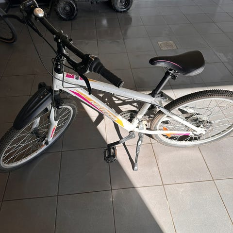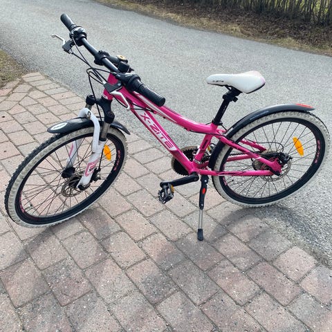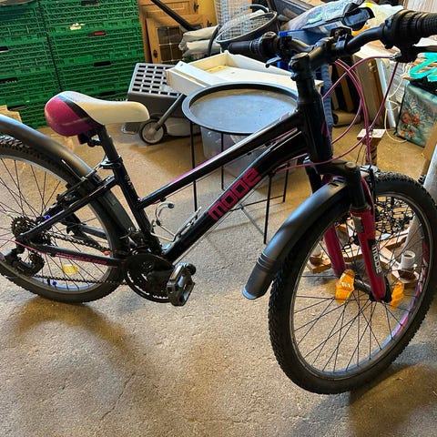 Svart og rosa diamant junior 24" med kurv selges 850kr