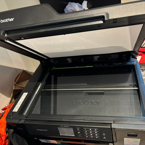 Flatbed-skanner med lokk og glassplate for innlegging av dokumenter og bilder. Egnet for skanning av papir, foto og andre flate originaler. Enheten kobles til datamaskin (tilkoblingstype og kabler avhenger av modellens spesifikasjoner og medfølgende utstyr).