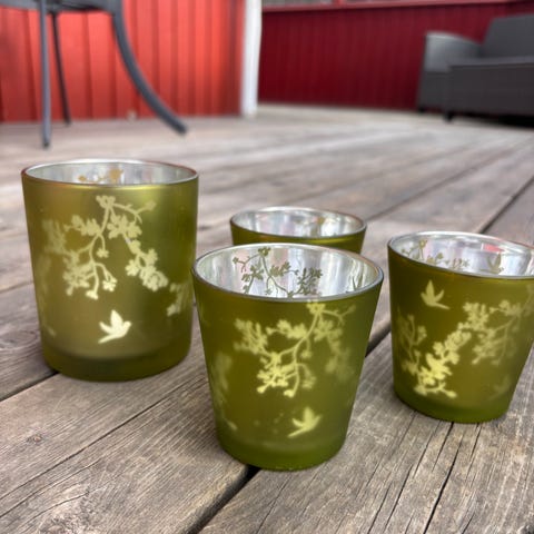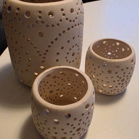 Selger to pent brukte telysholdere i fargen brun/beige.