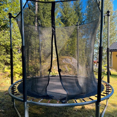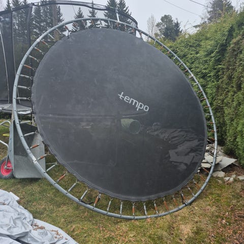Gir bort trampoline akkurat som den er. Godt brukt