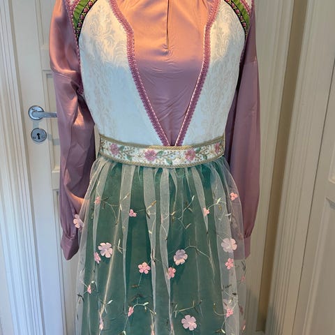 Koselig bakste forkle i rutet bomull stoff/lilla/hvit. L- 116 cm til topp smikken/ B-70 cm. Kan leveres i omr. Sandes/postnord!