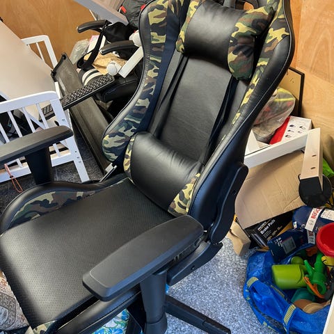 Selger min gamle gamingstol da jeg har kjøpt ny, er vel ca 5 år gammel, litt slitasje på nakkepute og rygg. Har byttet hjul på den
