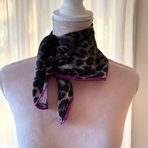 Selger et eksklusivt silkeskjerf fra Roberto Cavalli. Skjerfet har ikonisk dyremønster (zebra, leopard og snake) i varme brune toner. Laget av 100 % silke – lett, mykt og elegant.