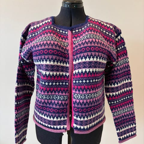 Selger deilige og varme hjemmestrikkede cardiganen fordi den desverre ikke blir brukt🥲 Oppskriften er fra boka "Strikk meg!", og den er strikket i ull og mohair. Passer M-XL