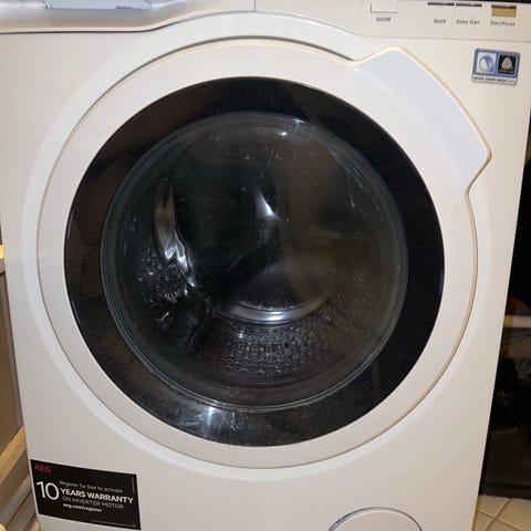 Maskinen fungerer, men den bråker når den sentrifugerer. Jeg er derfor usikker på om noe må fikses på den etter hvert. Selges derfor veldig billig.