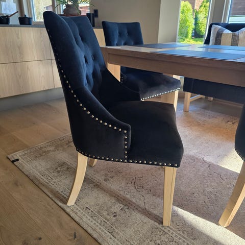 Med en god tekstilrens/møbelrens vil nok disse kunne bli betraktelig finere. Perfekt for deg som ønsker kvalitetsstoler til en rimelig penge og ikke er redd for å gi dem en liten vask!