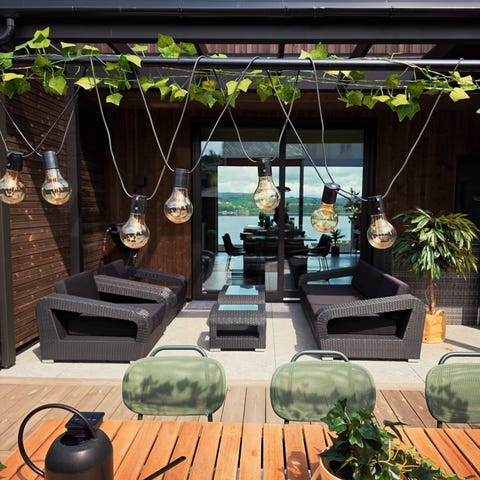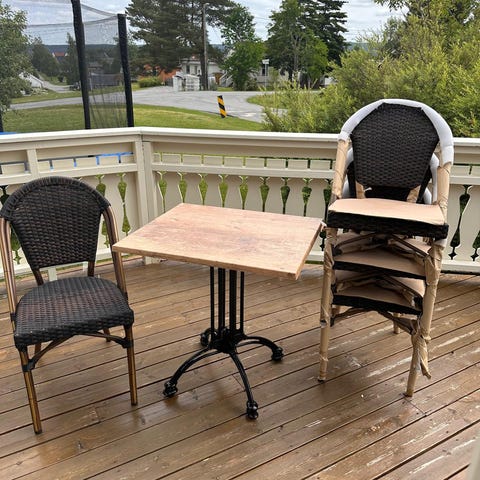 Nyt en kopp te i morgensol fra dette nydelige hagesettet stilrent å lettstelt ,lette møbler å flytte .
