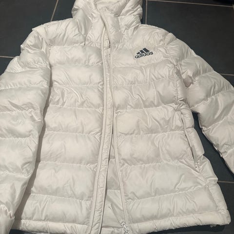 Adidas vinterjakke for dame i størrelse M. Jakken er svart og laget i polyester. Modellen har hette og flere lommer foran. Glidelås i front og glidelåsdetaljer nederst på ermene. Passer som ytterjakke i kaldere vær.