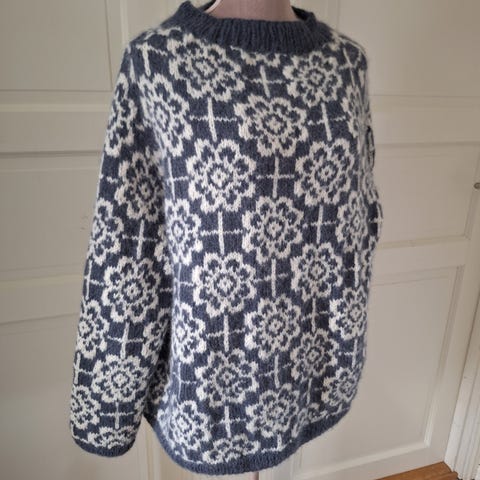 Selger denne nydelige hjemmetstrikkede genseren.