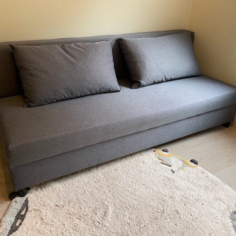 Enkel sofa (200x80 cm) som kan foldes ut til en liten dobbeltseng.