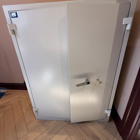 Selger et komplett brannskap med brannslange (25m / 19mm).