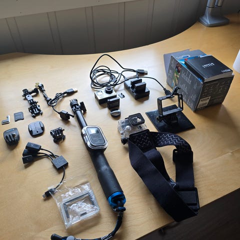 Go pro Hero 11 black action camera with Go pro Volta and knee and hand mounts. It’s very new but I am not using it much so selling it. It’s the creator edition which is right now at 6k on foto.no. Comes with SD card.
