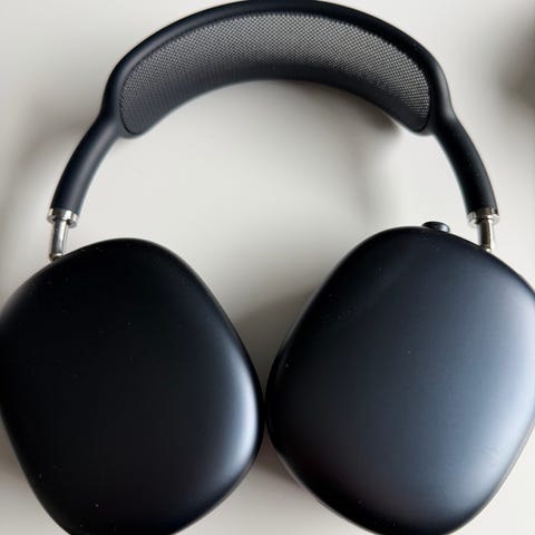 Apple AirPods Max hodetelefoner i stellargrå. modell nr. A2096. Dette er Lightning modellen. Over-ear hodetelefoner med justerbar hodebøyle og myke øreputer for komfortabel bruk. Leveres med Smart Case som vist på bildene. Egner seg til trådløs lytting til musikk, film og samtaler sammen med kompatible Apple-enheter.