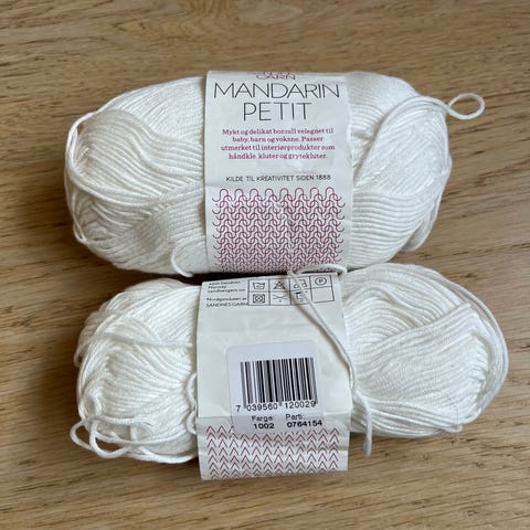 8 nøster (hvert nøste 50g) med lappen på + et nøste med på kjøpet uten lapp (som er på 47g)