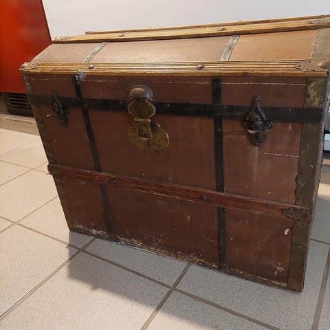 Stor gammel sjarmerende Amerikakoffert med flatt lokk.
