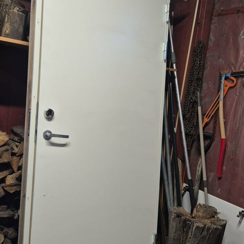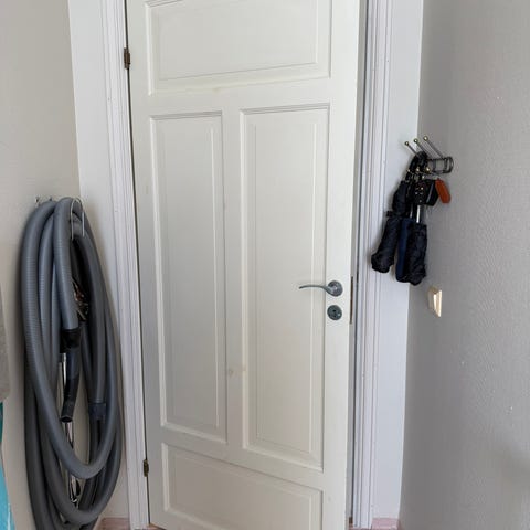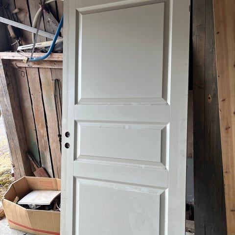 Hvit innerdør med karm, 89 cm x 209 cm utv karm. bruksmerker fins men svært lite
