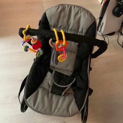 Yngri vippestol, pent og lite brukt da den har stått som reserve hos bestemor. Avtagbar lekebøyle, bærehåndtak og justerbar rygg. Nypris 699,-