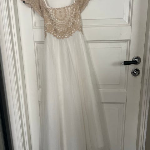 WOW kjole til spesiell anledning i størrelse M (vil tro det tilsvarer en dame XS/S). Kjolen er rosa og laget i polyester. Den har ermeløst snitt og lang lengde. Midjen er markert med dekorativ perle- og paljettbroderi foran. Baksiden har åpning øverst med lukking i nakken. Nederst har kjolen et lag med lett, gjennomsiktig stoff utenpå, med en splitt. Egner seg til formelle anledninger som selskap, bryllup eller andre høytidelige arrangementer.
