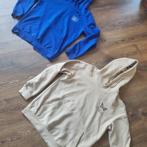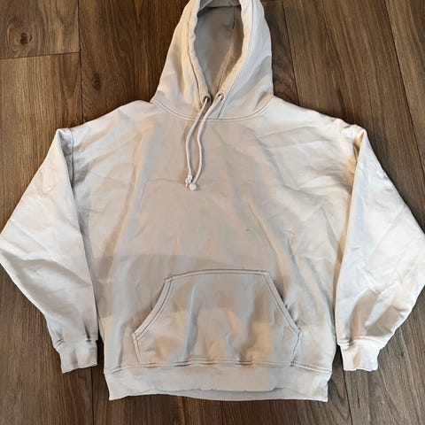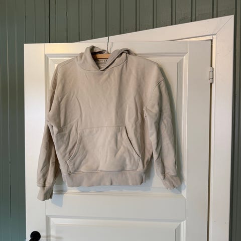 Nelly hettegenser for dame i størrelse S. Genseren er beige og laget i bomull. Har en vid passform.