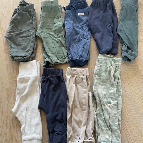 Pent brukte bukser (Ellos, HM, Zara) + en tights fra Newbie ☺️ Den grønne er i 92, men liten i str.