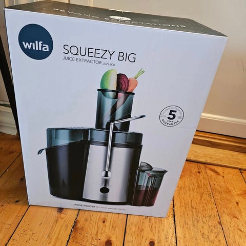 Wilfa juicemaskin i rustfritt stål. Juicemaskinen har hus i metall med blanke og sorte detaljer og et regulerbart kontrollhjul i front. Den er egnet til pressing av frukt og grønnsaker til juice i hjemmet. Maskinen har en toppmontert påfyllingsåpning og låsearm for sikker bruk. Passer på kjøkkenbenk for daglig eller sporadisk bruk til tilberedning av juice og andre drikker basert på ferske råvarer. Denne er superfin og tar liten plass.