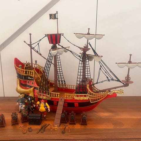 Kaptein Sabeltann, skute, figurar og gjenstandar.