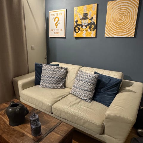 Godt brukt, men fortsatt veldig behagelig og sitte i, IKKE nedslitt.