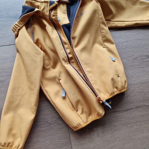Reflex jakke for barn i størrelse 116, unisexmodell. Jakken er oransje og laget i Gore-Tex-materiale. Den har hette, glidelås i front og glidelåslommer. Innsiden har mykt fôr for økt komfort. Passer til bruk i vått og vindfullt vær, og er egnet til hverdagsbruk og utendørslek for barn i aktuell størrelse.
